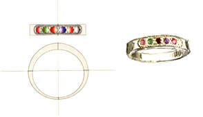 字などを宝石として指環に刻み込むこともできます。 |